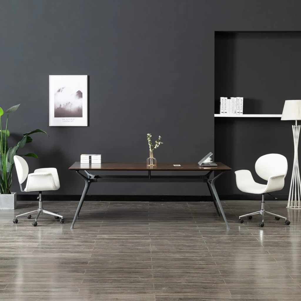Dieser drehbare Bürostuhl mit stilvollem und zeitgemäßem Design ist eine perfekte, praktische und moderne Ergänzung für Wohnzimmer, Schlafzimmer, Lounge oder Büro. Es bietet Ihrer Familie einen komfortablen Ort, um im Arbeitszimmer zu arbeiten oder sich im Wohnzimmer auszuruhen. Sitz und Rückenlehne sind ergonomisch geformt, mit weichem Kunstleder bezogen und mit Schaumstoff dick gepolstert, was den Stuhl sehr bequem macht. Die Metallbeine tragen zu seiner Langlebigkeit und Stabilität bei und sind ästhetisch ansprechend. Der Stuhl ist um 360 Grad drehbar und verfügt über einen höhenverstellbaren Mechanismus mit Gasfedermechanismus. Der Bürostuhl ist auch einfach zu montieren.