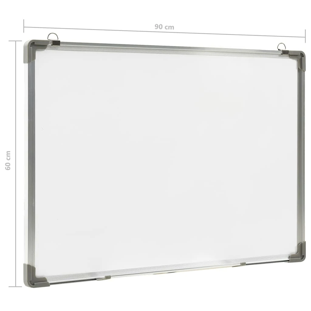 Unser an der Wand montiertes magnetisches Whiteboard ist eine ideale Lösung, um einen zentralen Ort in Ihrem Zuhause oder Büro zu schaffen, an dem Sie Notizen schreiben, zeichnen oder Fotos aufhängen können. Das Whiteboard hat eine lackierte Stahloberfläche, die mit dem im Lieferumfang enthaltenen Marker und dem Tafelwischer leicht zu beschriften und zu reinigen ist. Der Aluminiumrahmen und der Eckenschutz machen es robust und gleichzeitig langlebig. Sie können ebenfalls Gegenstände, durch die mitgelieferten Magnete, aufhängen. Für das einfache Aufhängen der Tafel sind Haken sowie Nägel im Lieferumfang enthalten.